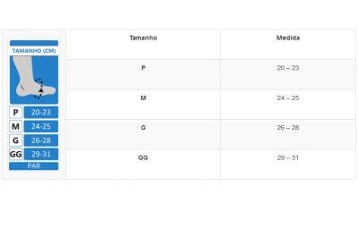 Tabela de Tamanhos (Circunferência do Meio do Pé)